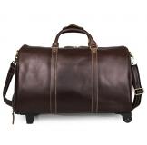> Men's Leather Bags > Travel Bags > 7077LC Unisex Coffee Color Genuine Leather Travel Tote Bag Trolley.100% Guarantee genuine - excellent cow leather