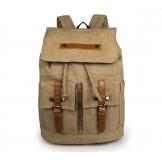 > Canvas + Leather Bags > Backpacks > 9026N Durable Canvas Light Army Green Rope Top Clousre Hiking Knapsack Laptop Backpack.Excellent canvas and leather