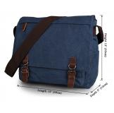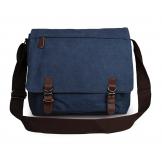 > Canvas + Leather Bags > Backpacks > 9027K Blue Durable Canvas Messenger Bag Cross Body Book Bag.Excellent canvas with leather trimmig