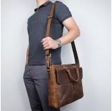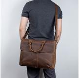 > Men's Leather Bags > Briefcase Handbags > 7113R-2 100% Real Crazy Horse Leather Men's Dark Brown Briefcase Handbag Shoulder Laptop Bag.100% Guarantee genuine - excellent crazy horse leather