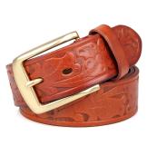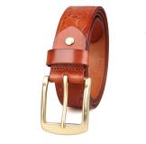 > Leather Belts > B014B-1 Brown Embossed Cow Hide Leather Belt for Men.100% Guarantee genuine - excellent vegetable leather