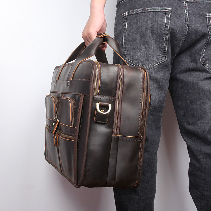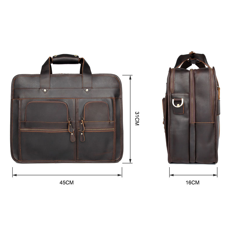 > Men's Leather Bags > Briefcase Handbags > 7387R-1 Dark Brown Crazy Horse Leather Briefcase Men's Handbag . 100% Guarantee genuine - excellent vintage leather