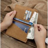 > Men's Leather Bags > Wallets and Clutch bag > R-8436B-1 Light Brown Crazy Horse Leather Wallet RFID Card Holder.There are 3 card holders, 2 secret pockets, 2 passport holders, 1 money holder.