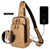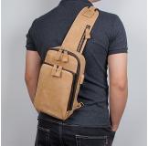 > Men's Leather Bags > Waist Bag Fanny Pack > 4024B Tan Vintage Genuine Leather Chest Bag for Men .100% Guarantee genuine - excellent vintage cow leather