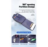 .There is 1 laptop bag, 1 ipad pocket, 4 open pockets in one of main zip pocket.