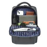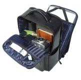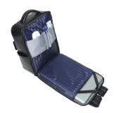 .There is a zip pocket in one layer, 2 pen slots, 1 wallet pocket , 1 phone pocket , 1 laptop compartment in another layer.
